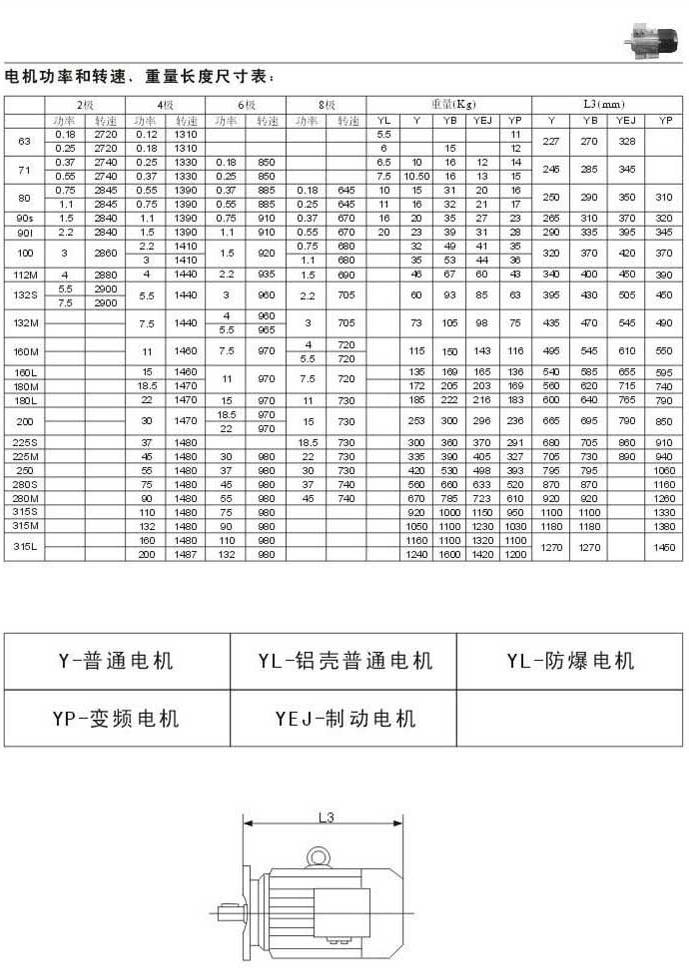 電機(jī)功率和轉(zhuǎn)速.重量長(zhǎng)度尺寸表電機(jī)代號(hào)